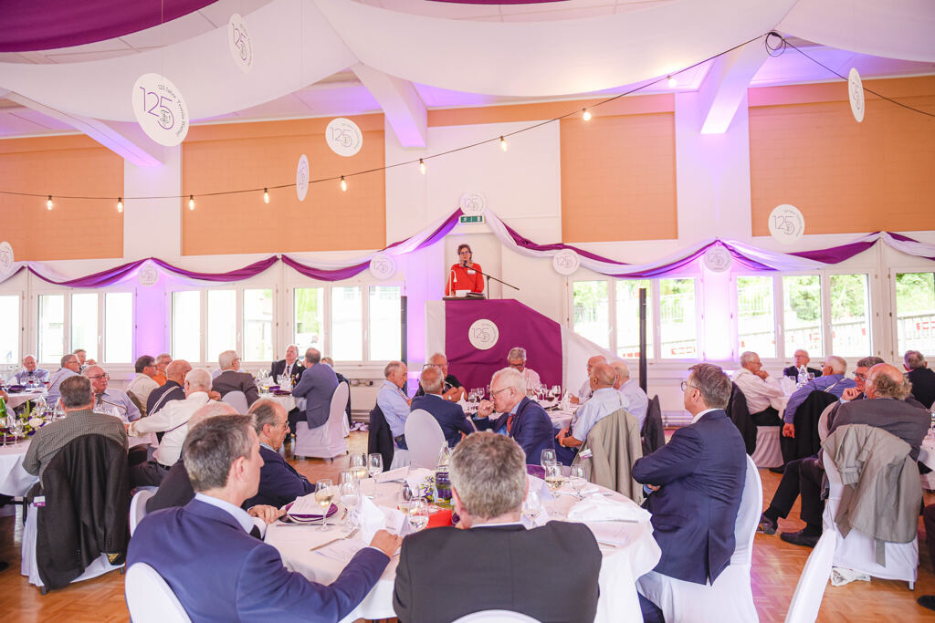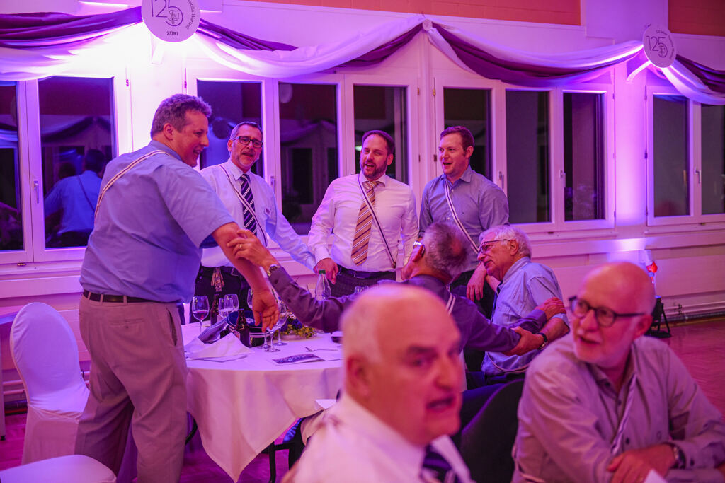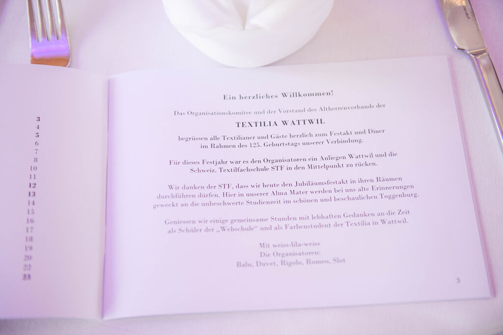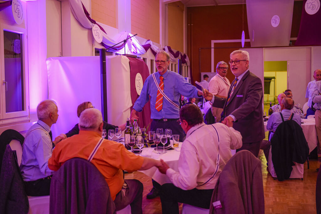 Balu moderierte den ganzen Abend. Der Festakt war in die Speisenfolge integriert. Noch vor dem ersten Gang lauschten wir den Grussworten von Kick und den beiden Ehrengästen Stephanie Witschi (CEO STF) und Alois Gunzenreiner, Gemeindepräsident von Wattwil. Hochinteressante Voten. Dazwischen noch das „Gaudeamus“ gesungen.