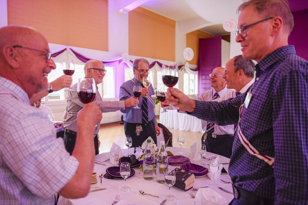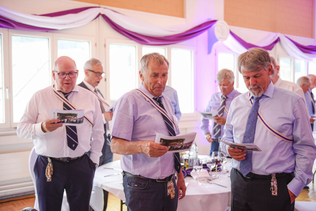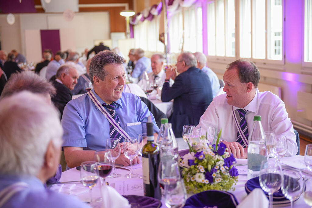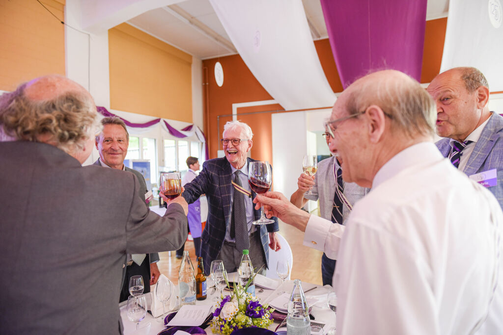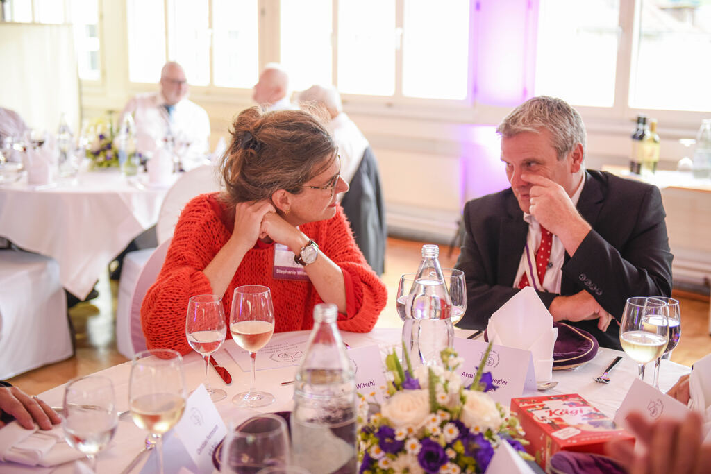 Balu moderierte den ganzen Abend. Der Festakt war in die Speisenfolge integriert. Noch vor dem ersten Gang lauschten wir den Grussworten von Kick und den beiden Ehrengästen Stephanie Witschi (CEO STF) und Alois Gunzenreiner, Gemeindepräsident von Wattwil. Hochinteressante Voten. Dazwischen noch das „Gaudeamus“ gesungen.