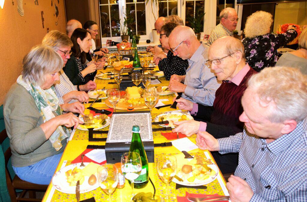 Dank der grossen Auswahl einer Käsesorte konnte geschlemmt werden, was das Zeug hält. Und die einzige Pfeffermühle kreiste im Eiltempo von Chäs zu Chäs. Mitten im Racletteschmaus versagte ein Öfeli seinen Dienst, da eine Kabelrolle nicht abgewickelt worden war. Zum Glück sprach der Überhitzungsschutz an. Kabel abgerollt – Abkühlen der Rolle – weiter ging’s.