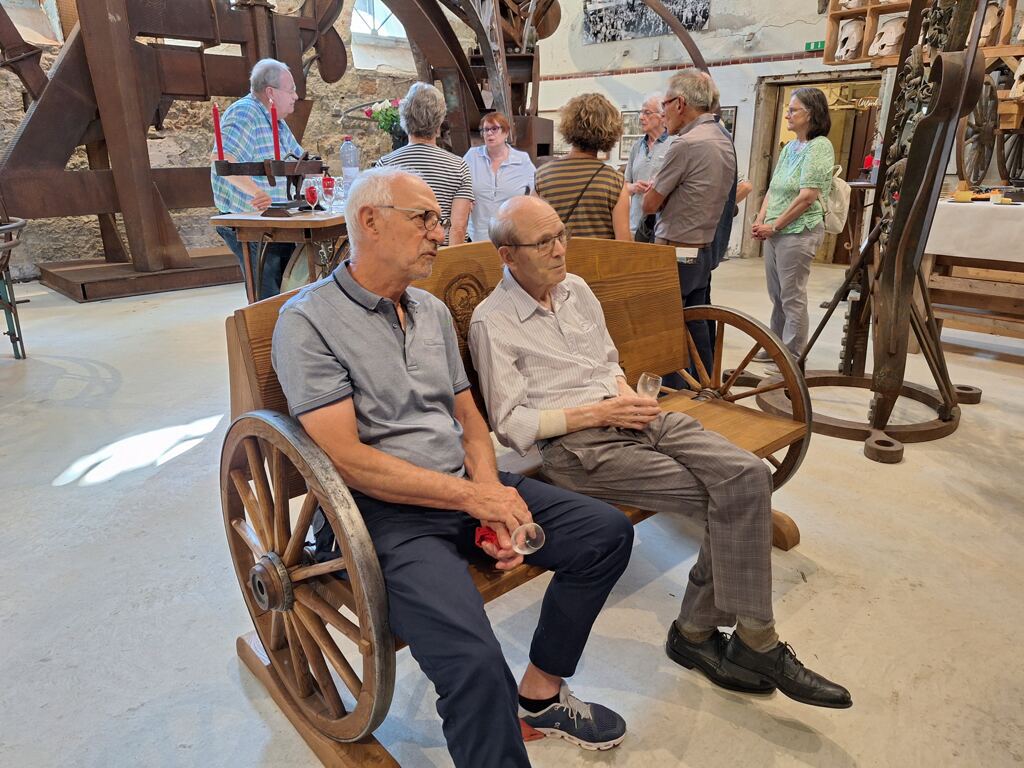 So kam es, dass sich zehn Landenberger und Landenbergerinnen pünktlich trafen im HB Zürich. Struppi und Christine sassen schon im richtigen Zug und haben für uns Plätze freigehalten. Eine gute Stunde später Ankunft in Burgdorf und kurz darauf im Hotel. Einchecken, Kaffeetrinken und ab zum ersten Höhepunkt. Im Alten Schlachthaus stehen Teil des Lebenswerks von Bernhard Luginbühl. Berühmt ist er für seine überdimensionalen Maschinen und Skulpturen. Aber aus seinem früheren Wirken gibt es sehr viele Zeichnungen, alle in schwarz-weiss. Seine Schwiegertochter, Marlis Luginbühl, zeigte und erklärte uns nicht nur die Kunst, sondern auch den Menschen Bernhard Luginbühl. Bei einem kleinen Apéro konnten die rostigen Maschinen weiter inspiziert werden. Kurzer Spaziergang zum Nachtessen im Biergarten vom Schützenhaus mit Burgdorfer Bier. Heimweg mit Blick auf das Schloss via die alte Holzbrücke über die kleine Emme hin bis zur grossen Emme. Dort dem Ufer entlang durch einen grünen Buschtunnel direkt zum Schlummerbecher in der Unterkunft.