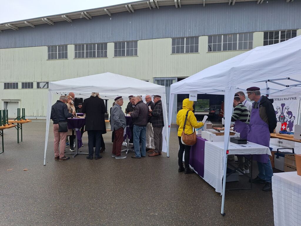 Die Zelte von Kick waren vor allem am regnerischen Morgen sehr wichtig. Zum Glück war uns nach dem Mittag das Wetter hold, so dass sich unsere Festbänke gut füllten. Alle dreihundert Würste haben wir verkauft, wenn auch die letzten neun ohne Brot. Auch sonst hatten wir von allem genug. Die flüssigen Reste lagere ich im Keller ein und werde sie im Laufe der Zeit vernichten. Ein erster Überblick zeigt, dass es auch finanziell es einigermassen aufgehen sollte, und ein Obolus an die STF möglich ist.